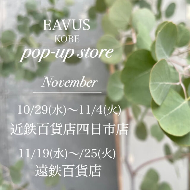 こんにちは。明日10/29(水)より近鉄百貨店四日市店でのPop up storeが始まります。神戸のお店にも三重からお越しいただくお客様もいらっしゃり、今回の開催をお待ちいただいていておりました。ご来店をお待ちいたしております。